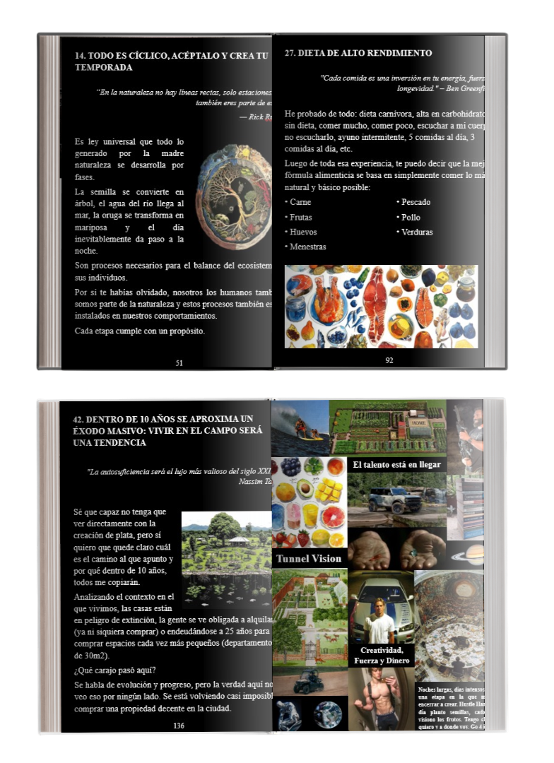 Material escrito por mí con el objetivo de decirte todo lo que nadie te ha dicho en tu p*ta vida: CÓMO ESCAPAR DE LA VIEJA SOCIEDAD Y AFILARTE COMO NAVAJAEn estas +260 páginas ilustradas te enseñaré a profundidad a:✅ Reprogramar tu mente y dejar de ser un NPC